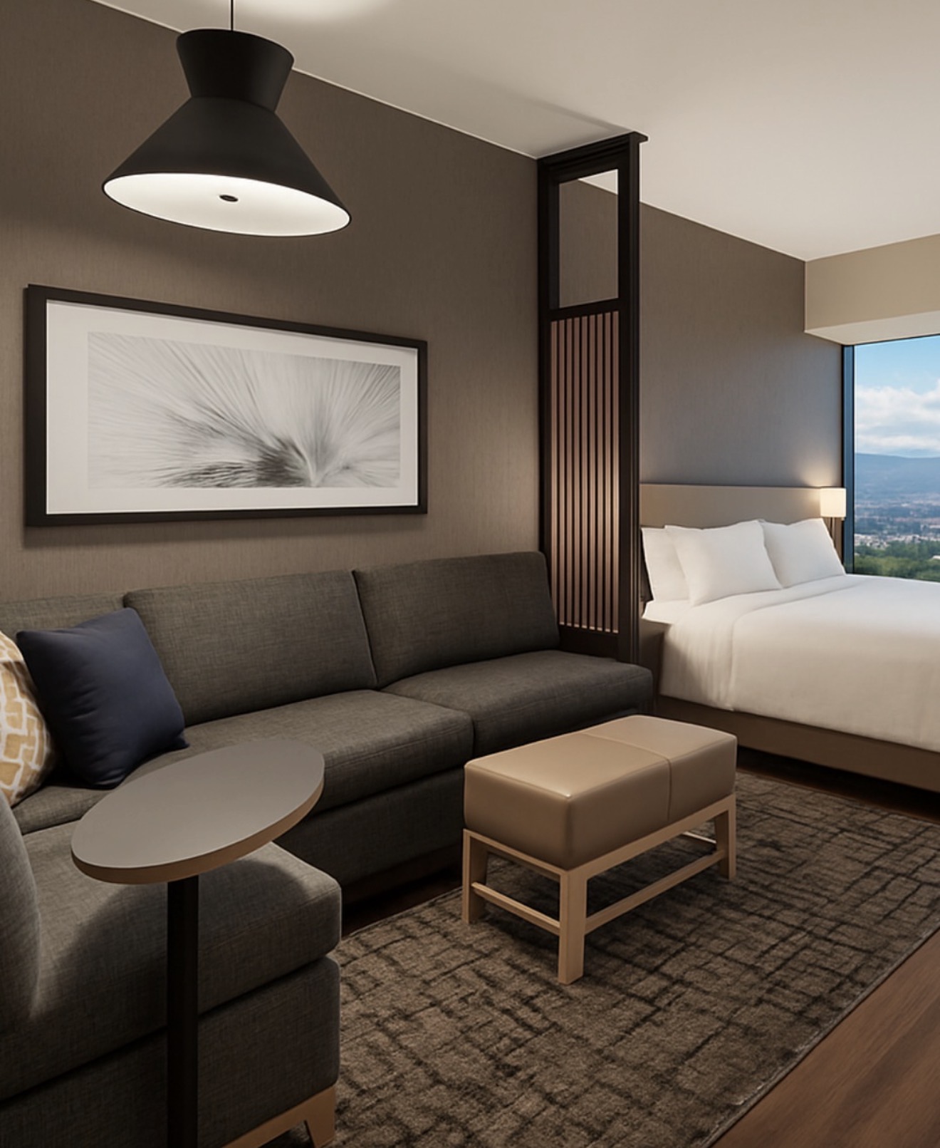 Modern guest rooms with workspaces