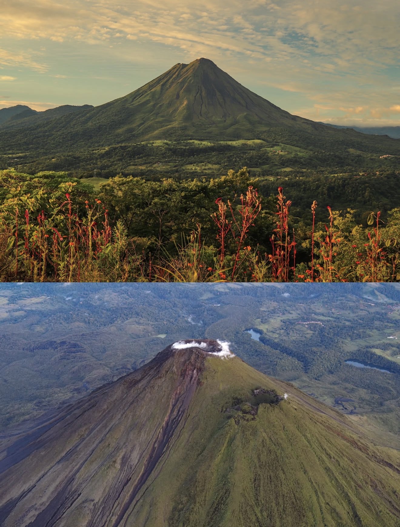The landscape surrounding La Fortuna is defined by the towering Arenal Volcano, one of Costa Rica’s most famous natural landmarks. The volcano rises dramatically above the rainforest and dominates the skyline throughout the region.