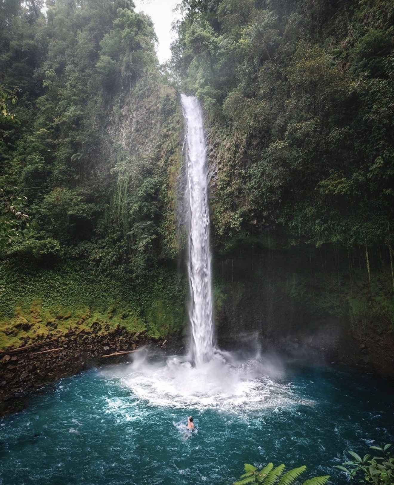 Another major natural attraction is La Fortuna Waterfall, a tall cascade that drops into a clear jungle pool surrounded by dense rainforest. The waterfall is one of the most photographed locations in the region and offers visitors the opportunity to swim at the base of the falls.